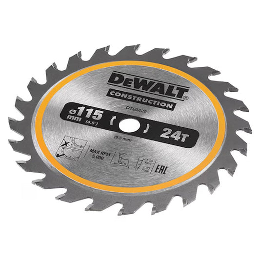 Lame de scie circulaire sans fil DEWALT DT20420-QZ Carbure Construction Ø115x9,5mm, 24 dents