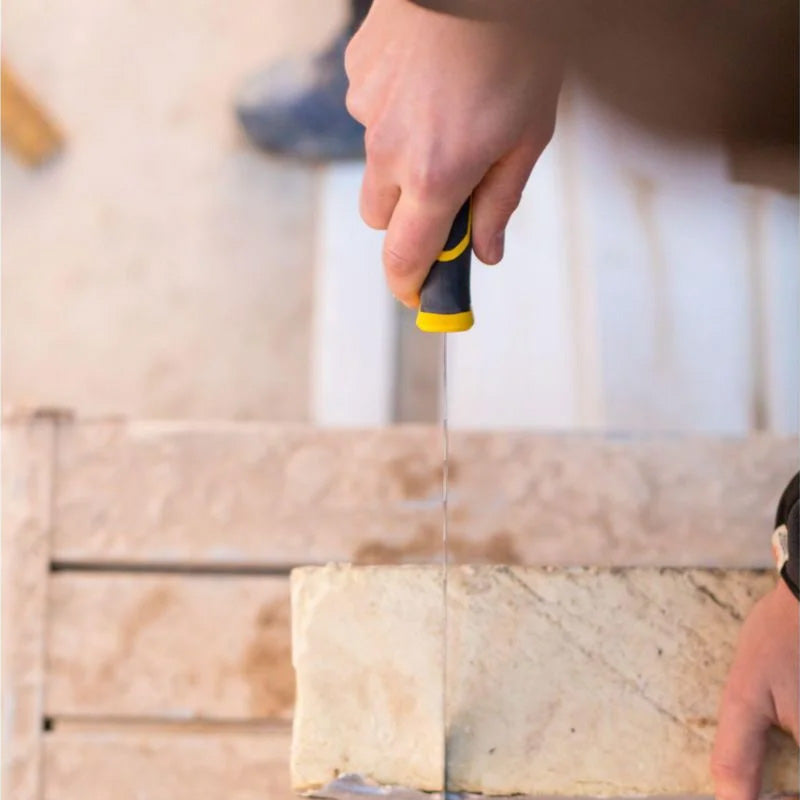 Sa denture double – dentelée/vague pour les isolants souples (laine de verre, isolations de combles) et fine pour les matériaux plus durs (isolation murale ou en cavité) – permet de s’adapter à tous les types d’isolants.