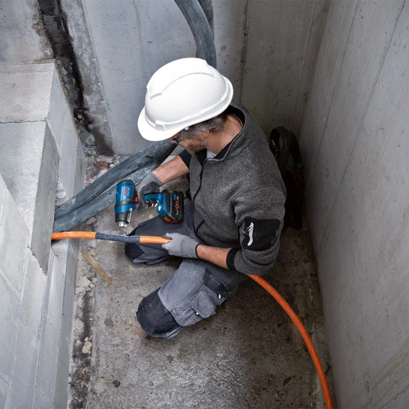 Son éclairage LED intégré assure une excellente visibilité de la zone de travail, même dans les endroits sombres. Compatible avec toutes les batteries 18V Bosch Professional et les produits AMPShare, il garantit une flexibilité maximale sur le chantier. Son format ergonomique et léger le rend idéal pour une utilisation mobile, tout en restant compatible avec les buses des modèles filaires Bosch.