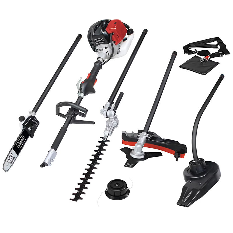 Type : Outil de jardin multifonction thermique 5 en 1 Motorisation : 2 temps, 42,7 cm³ Guide et chaîne : 10" pour une coupe optimale Technologie : Anti-vibrations avec sangle d’épaule professionnelle