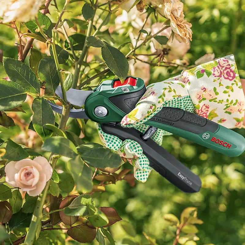 Le sécateur sans fil BOSCH EasyPrune est conçu pour vous offrir une assistance électrique, rendant la coupe des branches plus facile et plus efficace. Il combine légèreté, ergonomie et technologie avancée pour des résultats optimaux dans votre jardin.