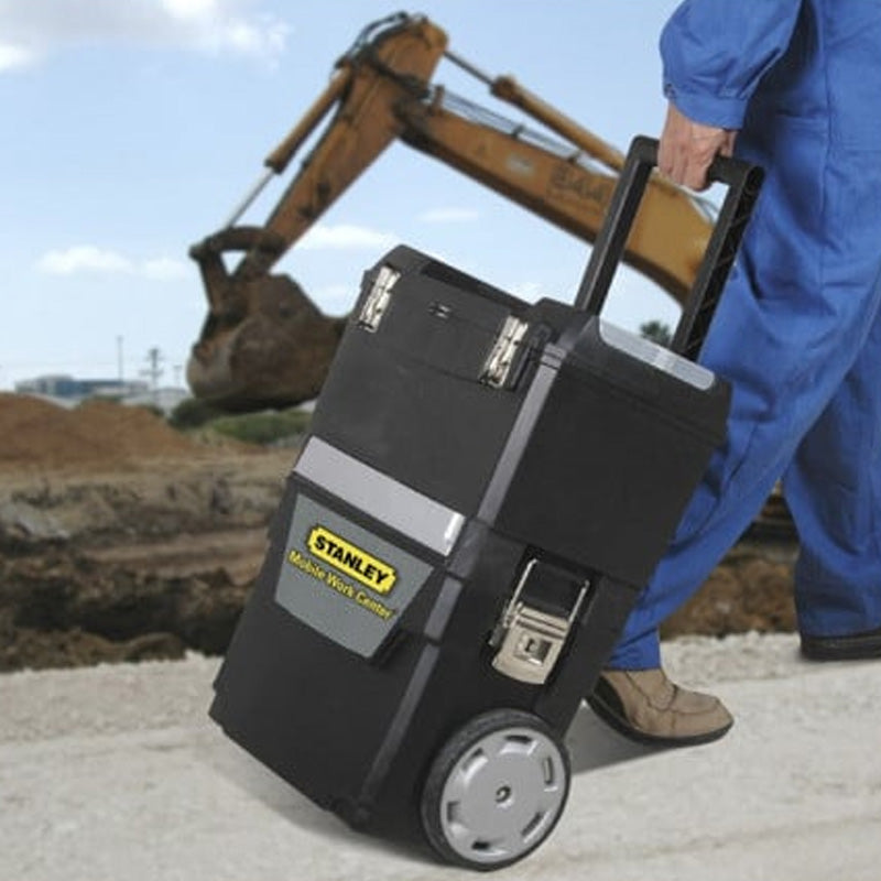 Fabriquée en matière synthétique ultra résistante, elle est conçue pour durer. Sa poignée télescopique ajustable et ses roues grand diamètre assurent une mobilité optimale, même sur les chantiers difficiles. Les attaches métalliques renforcent la sécurité de fermeture.