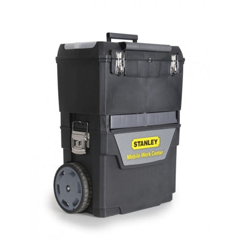 La servante d’atelier STANLEY Carbone offre une solution de rangement 3 en 1 extrêmement pratique pour les professionnels et les bricoleurs exigeants. Elle se compose de trois éléments autonomes : une maxi boîte à outils pour les accessoires volumineux, un coffre dédié aux outils électroportatifs et un carrousel rotatif pour un accès rapide aux pièces de petite taille.